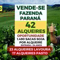 SEJA Apenas 7,8 Km da COAMO, 9,5 Cidade de Coronel Vivida - PR. Fazenda bem estruturada, casa sede, casa empregado, Barracão, Curral Fechado, LEITARIA, dois acessos e etc...Valor total de 63 mil sacas de soja, podendo ser pago entrada 25% e mais 04 de prazo em soja, Ou seja, APENAS 1490 sacas soja por ALQUEIRE. Excelente Região Agrícola, Sudoeste Paraná, Região de ótimo clima, Fazenda abundante em água com outorga.
